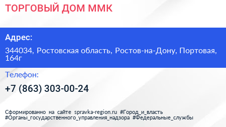 ТОРГОВЫЙ ДОМ ММК по адресу 344034, Ростовская область, Ростов-на-Дону, Портовая, 164г в дальнейшем Организация, размещена в следующих категориях: