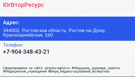 ЮгВторРесурс по адресу 344002, Ростовская область, Ростов-на-Дону, Красноармейская, 160 в дальнейшем Организация, размещена в следующих категориях: