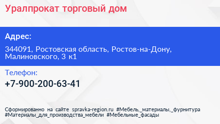 Уралпрокат, торговый дом по адресу 344091, Ростовская область, Ростов-на-Дону, Малиновского, 3 к1 в дальнейшем Организация, размещена в следующих категориях: