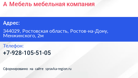 А-Мебель, мебельная компания по адресу 344029, Ростовская область, Ростов-на-Дону, Менжинского, 2м в дальнейшем Организация, размещена в следующих категориях: