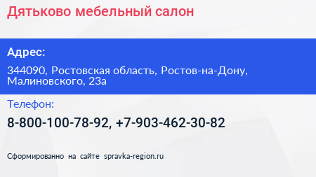 Дятьково, мебельный салон по адресу 344090, Ростовская область, Ростов-на-Дону, Малиновского, 23а в дальнейшем Организация, размещена в следующих категориях: