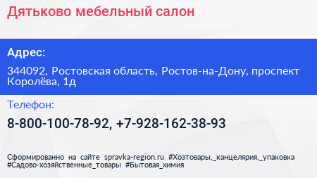 Дятьково, мебельный салон по адресу 344092, Ростовская область, Ростов-на-Дону, проспект Королёва, 1д в дальнейшем Организация, размещена в следующих категориях: