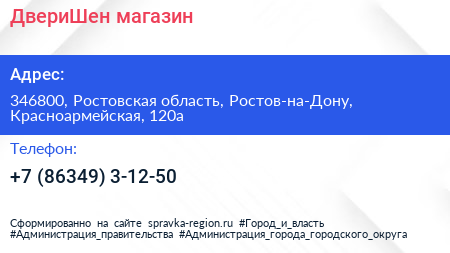 ДвериШен, магазин по адресу 346800, Ростовская область, Ростов-на-Дону, Красноармейская, 120а в дальнейшем Организация, размещена в следующих категориях:
