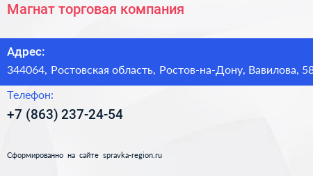 Магнат, торговая компания по адресу 344064, Ростовская область, Ростов-на-Дону, Вавилова, 58 в дальнейшем Организация, размещена в следующих категориях: