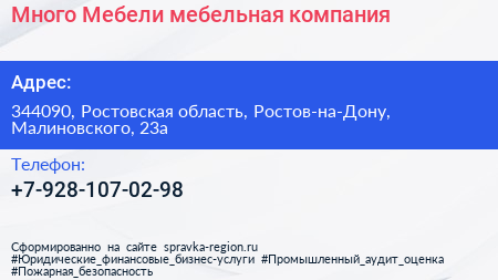 Много Мебели, мебельная компания по адресу 344090, Ростовская область, Ростов-на-Дону, Малиновского, 23а в дальнейшем Организация, размещена в следующих категориях: