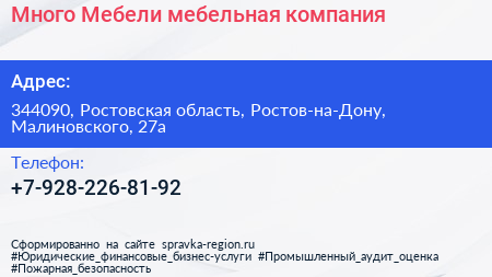 Много Мебели, мебельная компания по адресу 344090, Ростовская область, Ростов-на-Дону, Малиновского, 27а в дальнейшем Организация, размещена в следующих категориях: