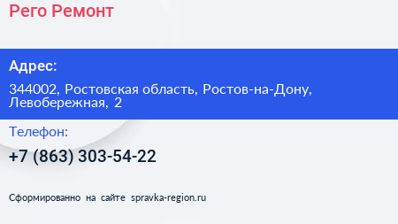 Рего-Ремонт по адресу 344002, Ростовская область, Ростов-на-Дону, Левобережная, 2 в дальнейшем Организация, размещена в следующих категориях: