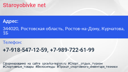 Staroyobivke.net по адресу 344020, Ростовская область, Ростов-на-Дону, Курчатова, 1Б в дальнейшем Организация, размещена в следующих категориях: