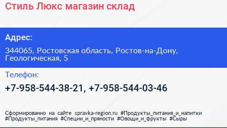 Стиль-Люкс, магазин-склад по адресу 344065, Ростовская область, Ростов-на-Дону, Геологическая, 5 в дальнейшем Организация, размещена в следующих категориях: