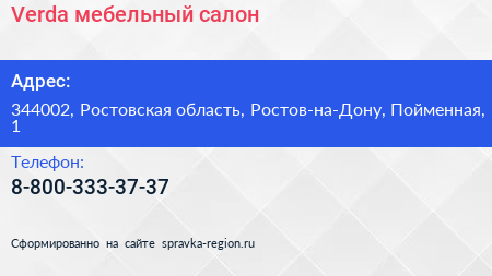Verda, мебельный салон по адресу 344002, Ростовская область, Ростов-на-Дону, Пойменная, 1 в дальнейшем Организация, размещена в следующих категориях: