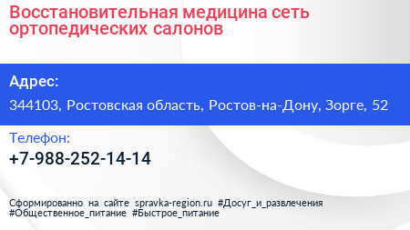 Восстановительная медицина, сеть ортопедических салонов по адресу 344103, Ростовская область, Ростов-на-Дону, Зорге, 52 в дальнейшем Организация, размещена в следующих категориях: