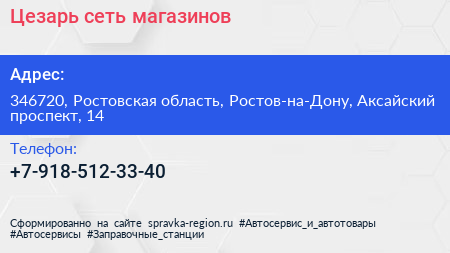 Цезарь, сеть магазинов по адресу 346720, Ростовская область, Ростов-на-Дону, Аксайский проспект, 14 в дальнейшем Организация, размещена в следующих категориях: