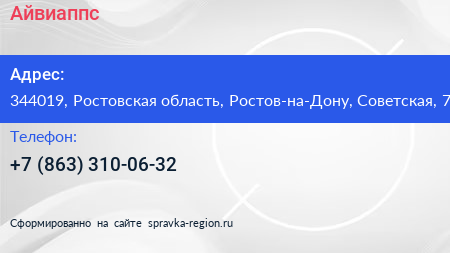 Айвиаппс по адресу 344019, Ростовская область, Ростов-на-Дону, Советская, 7 в дальнейшем Организация, размещена в следующих категориях: