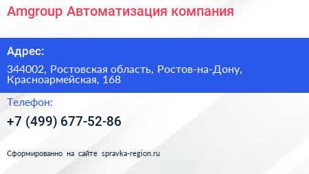 Amgroup Автоматизация, компания по адресу 344002, Ростовская область, Ростов-на-Дону, Красноармейская, 168 в дальнейшем Организация, размещена в следующих категориях: