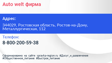 Auto-welt, фирма по адресу 344029, Ростовская область, Ростов-на-Дону, Металлургическая, 112 в дальнейшем Организация, размещена в следующих категориях: