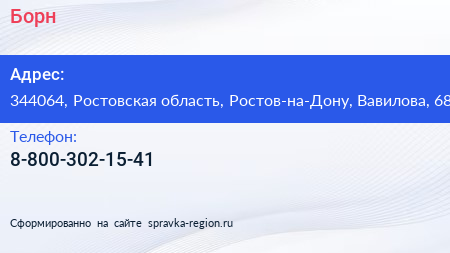 Борн по адресу 344064, Ростовская область, Ростов-на-Дону, Вавилова, 68 в дальнейшем Организация, размещена в следующих категориях: