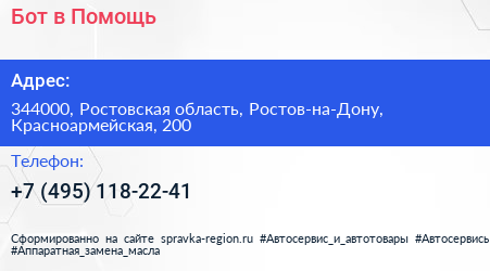Бот в Помощь по адресу 344000, Ростовская область, Ростов-на-Дону, Красноармейская, 200 в дальнейшем Организация, размещена в следующих категориях: