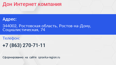 Дон Интернет, компания по адресу 344002, Ростовская область, Ростов-на-Дону, Социалистическая, 74 в дальнейшем Организация, размещена в следующих категориях: