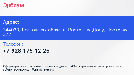 Эрбиум по адресу 344033, Ростовская область, Ростов-на-Дону, Портовая, 372 в дальнейшем Организация, размещена в следующих категориях: