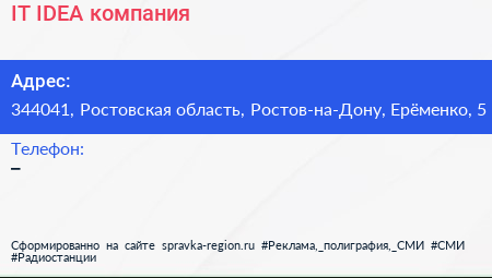 IT-IDEA, компания по адресу 344041, Ростовская область, Ростов-на-Дону, Ерёменко, 5 в дальнейшем Организация, размещена в следующих категориях: