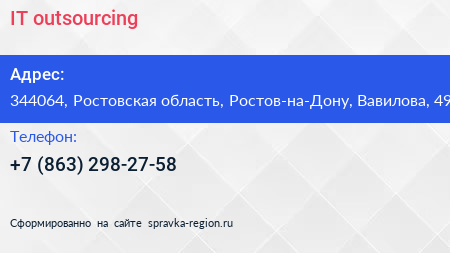 IT outsourcing по адресу 344064, Ростовская область, Ростов-на-Дону, Вавилова, 49 в дальнейшем Организация, размещена в следующих категориях: