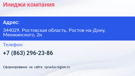 Иниджи, компания по адресу 344029, Ростовская область, Ростов-на-Дону, Менжинского, 2н в дальнейшем Организация, размещена в следующих категориях: