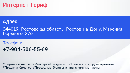 Интернет-Тариф по адресу 344019, Ростовская область, Ростов-на-Дону, Максима Горького, 276 в дальнейшем Организация, размещена в следующих категориях: