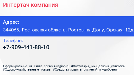 Интертач, компания по адресу 344065, Ростовская область, Ростов-на-Дону, Орская, 12д в дальнейшем Организация, размещена в следующих категориях: