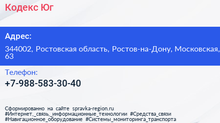 Кодекс Юг по адресу 344002, Ростовская область, Ростов-на-Дону, Московская, 63 в дальнейшем Организация, размещена в следующих категориях: