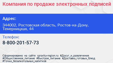 Компания по продаже электронных подписей по адресу 344002, Ростовская область, Ростов-на-Дону, Темерницкая, 44 в дальнейшем Организация, размещена в следующих категориях: