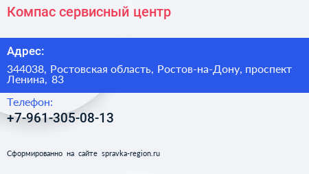 Компас, сервисный центр по адресу 344038, Ростовская область, Ростов-на-Дону, проспект Ленина, 83 в дальнейшем Организация, размещена в следующих категориях: