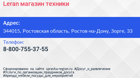Leran, магазин техники по адресу 344015, Ростовская область, Ростов-на-Дону, Зорге, 33 в дальнейшем Организация, размещена в следующих категориях: