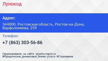Лунокод по адресу 344000, Ростовская область, Ростов-на-Дону, Варфоломеева, 259 в дальнейшем Организация, размещена в следующих категориях: