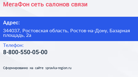 МегаФон, сеть салонов связи по адресу 344037, Ростовская область, Ростов-на-Дону, Базарная площадь, 2а в дальнейшем Организация, размещена в следующих категориях: