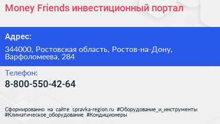 Money Friends, инвестиционный портал по адресу 344000, Ростовская область, Ростов-на-Дону, Варфоломеева, 284 в дальнейшем Организация, размещена в следующих категориях: