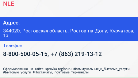 NLE по адресу 344020, Ростовская область, Ростов-на-Дону, Курчатова, 1а в дальнейшем Организация, размещена в следующих категориях: