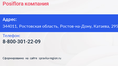 Posiflora, компания по адресу 344011, Ростовская область, Ростов-на-Дону, Катаева, 295 в дальнейшем Организация, размещена в следующих категориях:
