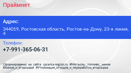 Праймнет по адресу 344019, Ростовская область, Ростов-на-Дону, 23-я линия, 4 в дальнейшем Организация, размещена в следующих категориях:
