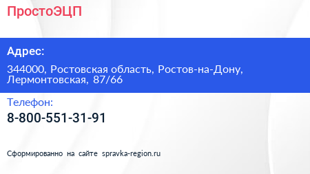 ПростоЭЦП по адресу 344000, Ростовская область, Ростов-на-Дону, Лермонтовская, 87/66 в дальнейшем Организация, размещена в следующих категориях: