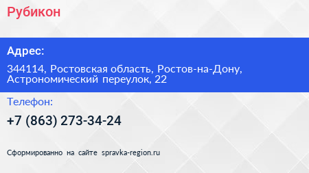 Рубикон по адресу 344114, Ростовская область, Ростов-на-Дону, Астрономический переулок, 22 в дальнейшем Организация, размещена в следующих категориях: