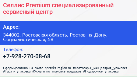 Селлис Premium, специализированный сервисный центр по адресу 344002, Ростовская область, Ростов-на-Дону, Социалистическая, 58 в дальнейшем Организация, размещена в следующих категориях: