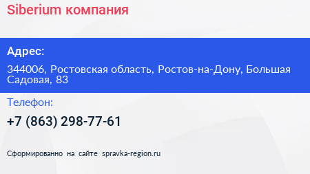 Siberium, компания по адресу 344006, Ростовская область, Ростов-на-Дону, Большая Садовая, 83 в дальнейшем Организация, размещена в следующих категориях: