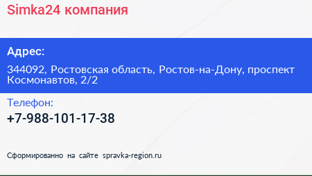 Simka24, компания по адресу 344092, Ростовская область, Ростов-на-Дону, проспект Космонавтов, 2/2 в дальнейшем Организация, размещена в следующих категориях: