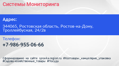 Системы Мониторинга по адресу 344065, Ростовская область, Ростов-на-Дону, Троллейбусная, 24/2в в дальнейшем Организация, размещена в следующих категориях: