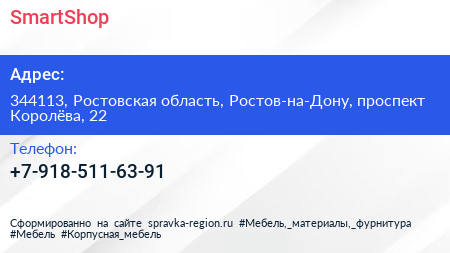 SmartShop по адресу 344113, Ростовская область, Ростов-на-Дону, проспект Королёва, 22 в дальнейшем Организация, размещена в следующих категориях: