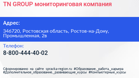 TN-GROUP, мониторинговая компания по адресу 346720, Ростовская область, Ростов-на-Дону, Промышленная, 2в в дальнейшем Организация, размещена в следующих категориях: