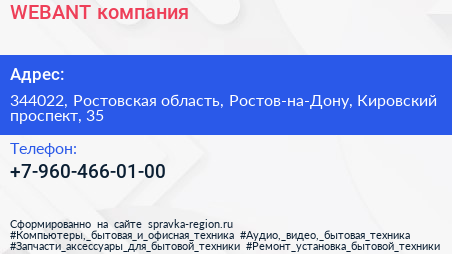 WEBANT, компания по адресу 344022, Ростовская область, Ростов-на-Дону, Кировский проспект, 35 в дальнейшем Организация, размещена в следующих категориях: