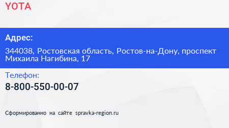 YOTA по адресу 344038, Ростовская область, Ростов-на-Дону, проспект Михаила Нагибина, 17 в дальнейшем Организация, размещена в следующих категориях: