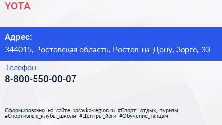 YOTA по адресу 344015, Ростовская область, Ростов-на-Дону, Зорге, 33 в дальнейшем Организация, размещена в следующих категориях: