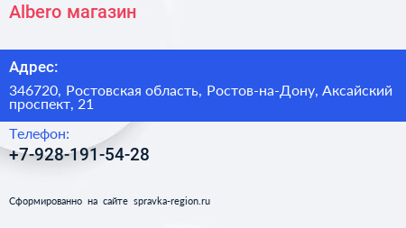 Albero, магазин по адресу 346720, Ростовская область, Ростов-на-Дону, Аксайский проспект, 21 в дальнейшем Организация, размещена в следующих категориях:
